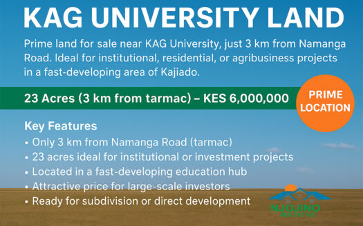 Prime 23-acre parcel for sale near KAG University, 3 km from Namanga Road. Ideal for institutional or investment development in ...