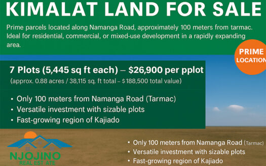 Discover prime plots for sale in Kimalat, just 100 meters from Namanga Road. These 7 parcels offer excellent accessibility, ide ...