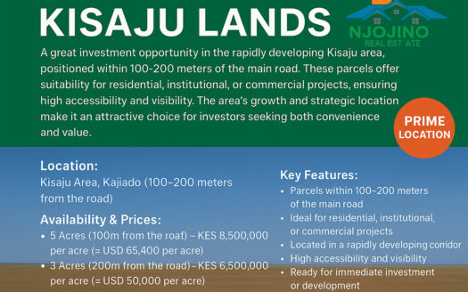 3–5-acre Kisaju land parcels for sale, just 100–200 meters from the road. Perfect for residential, institutional, or commercial ...